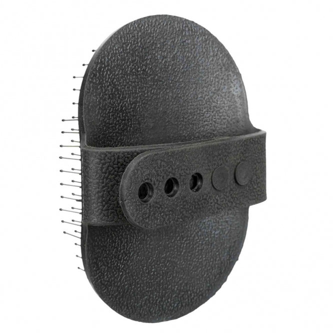 Dieser Pflegestriegel besteht aus Gummi und ist mit einer verstellbaren Handschlaufe ausgestattet. Die Stahlstifte sind rostfrei und an den Enden mit Naoppen ausgestattet.