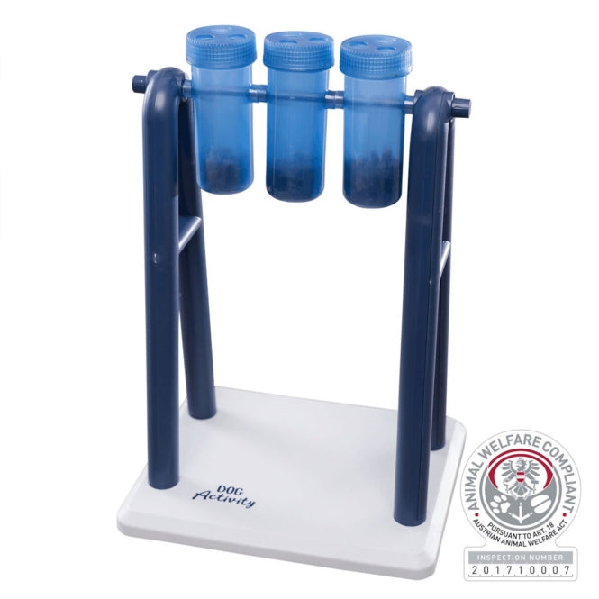 Hunde freuen sich über Abwechslung im Alltag. Der „Turn Around“ sorgt dafür, dass deine Fellnase ihren Spieltrieb ausleben kann. Das Dog Activity-Spielzeug besteht aus einem Ständer mit drei drehbaren Bechern und jeweils zwei dazugehörigen Deckeln. Die Becher kannst du mit verschiedenen Snacks befüllen. Ziel ist es nun, dass dein Vierbeiner die Drehelemente mit seiner Schnauze oder Pfote so lange bewegt, bis die Leckerchen herausfallen.